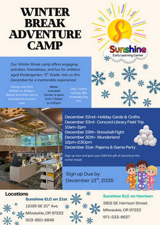 Sunshine Early Learning Center’s mission is to support the growth of all children and families equitably so that they can learn, grow, and shine bright to their highest potential!